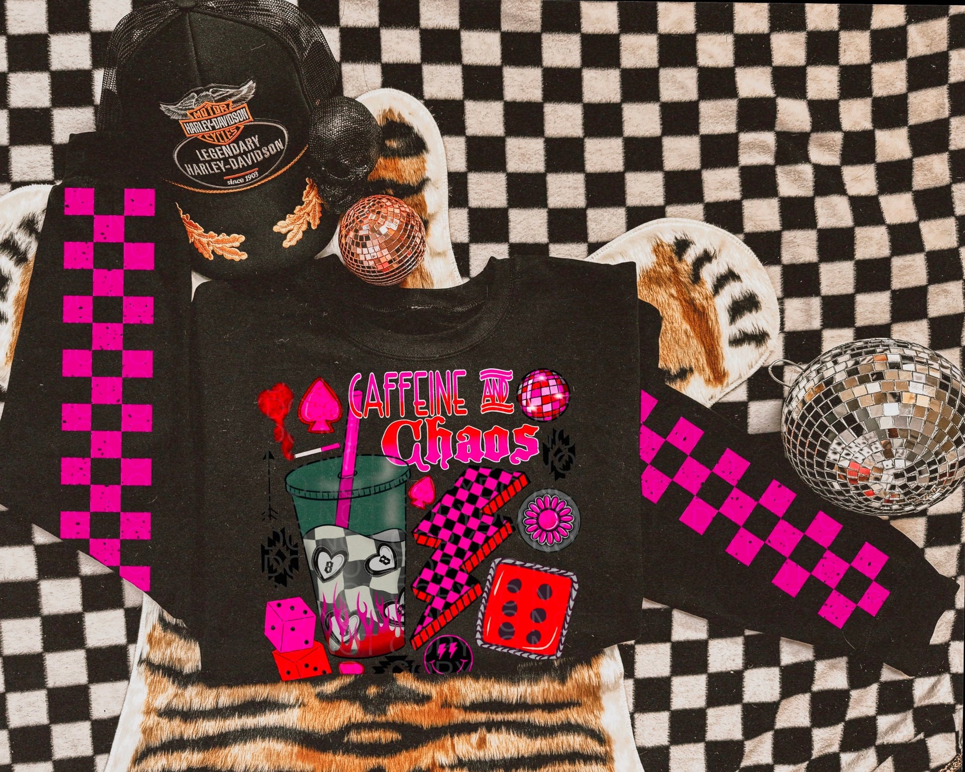 Caffeine & chaos checkered w/sleeve or without - Multiple Styles/Design