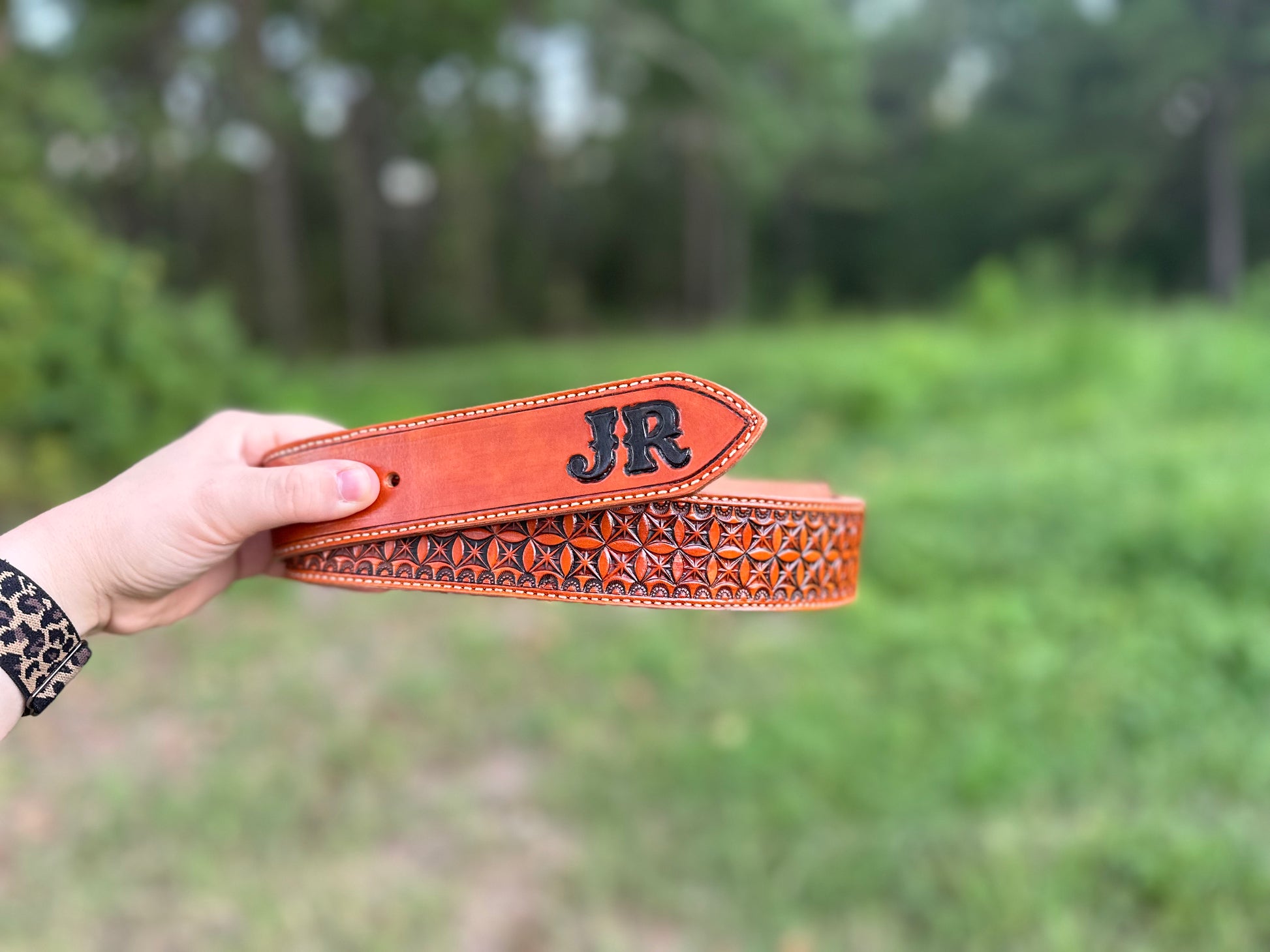 Custom belt. Completely customizable, from colors, designs, shape of the tip, etc.