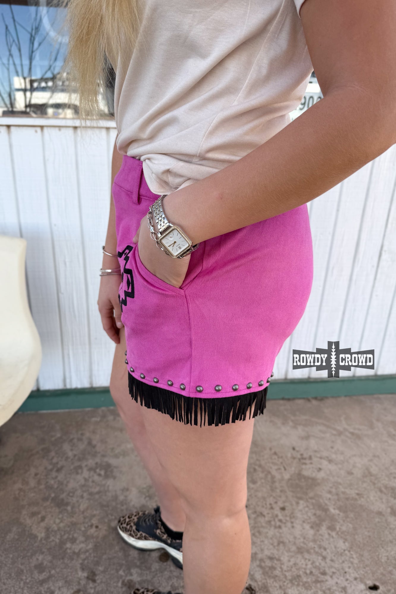 Saddle up in our Diamond Rio Shorts! These shorts feature fringe and stud detailing with bronc aztec embroidery on both sides. They are a soft suede-like material that is stretchy and forgiving!