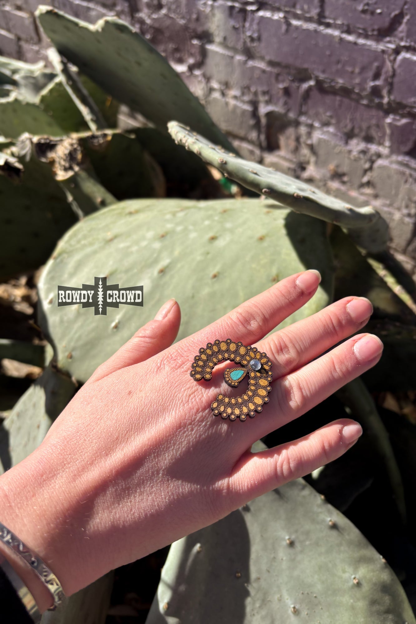 Our newest addition to our leather, the Kingsville scarf slide is the most colorful of them all. Crafted from 100% stained leather, a touch of turquoise and a sparkling rhinestone, this scarf slide is perfect for dressing up every outfit as a ring, tee clip or scarf slide for all the rhinestone cowgirls out there.
