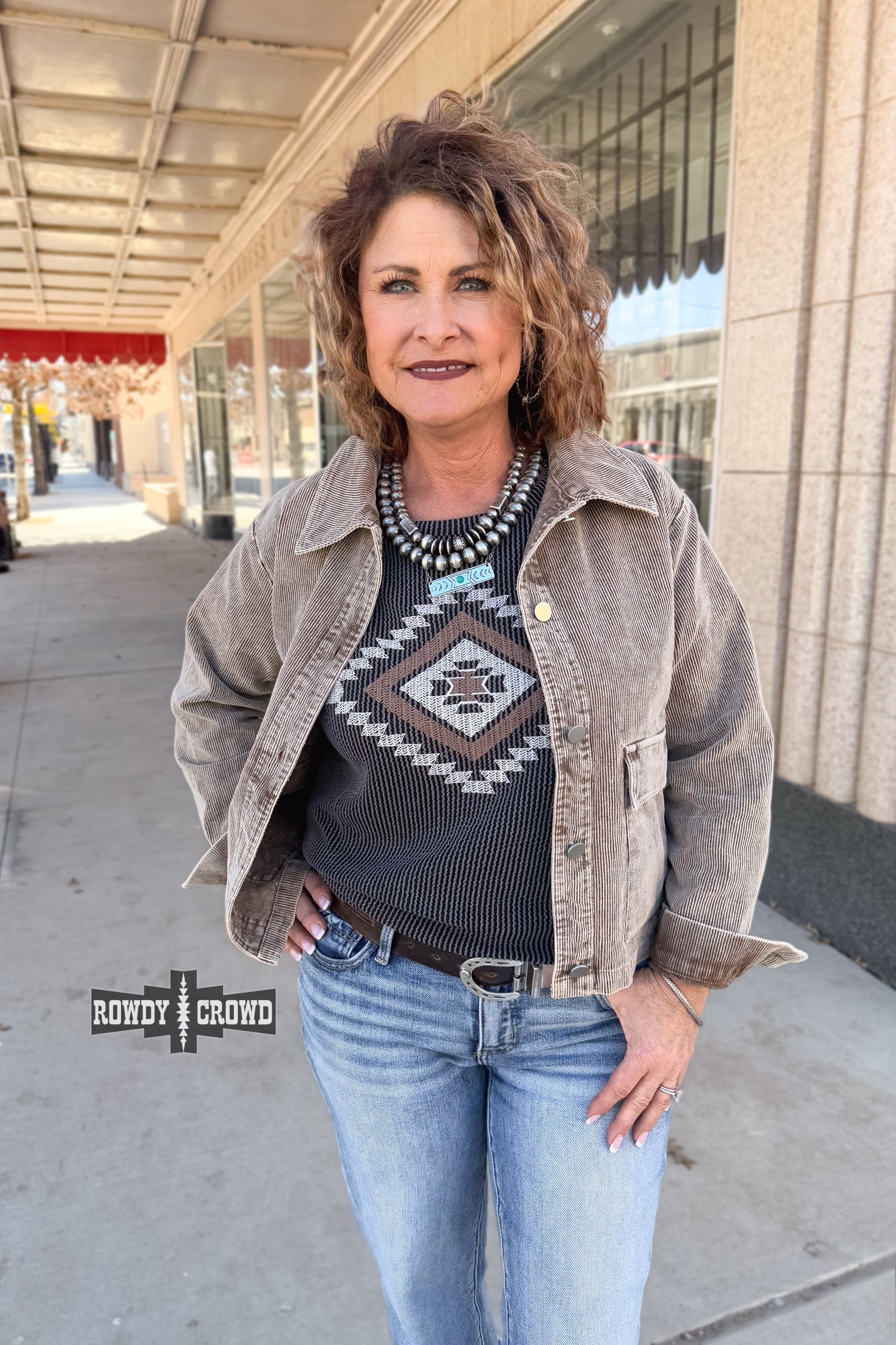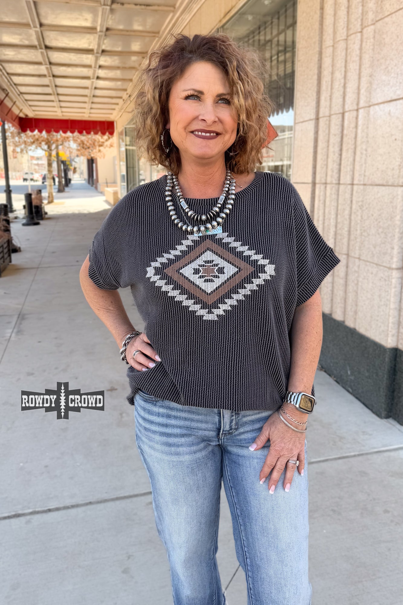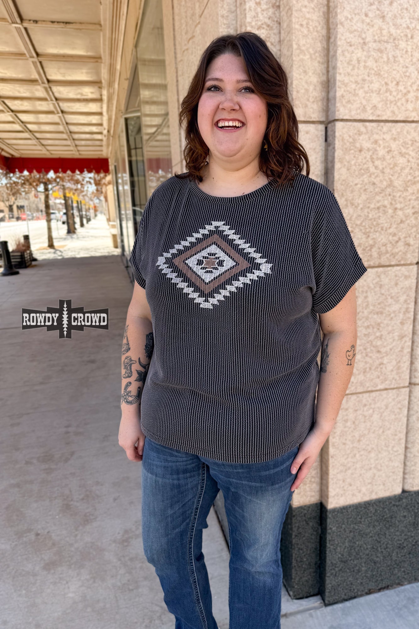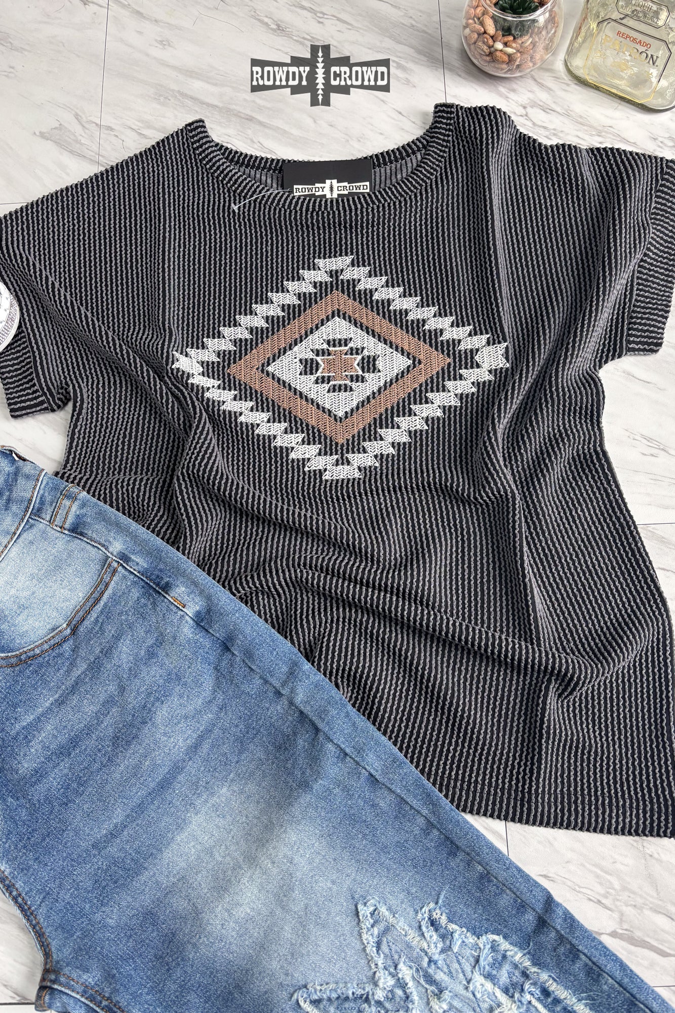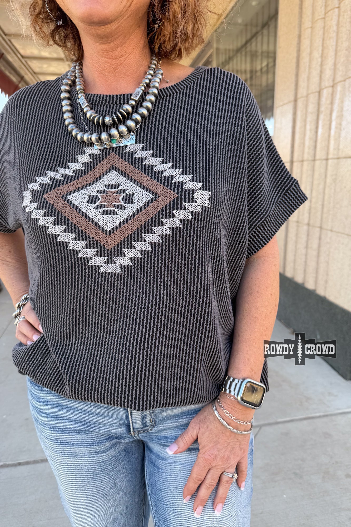 Get ready to be cute and cozy in our La Veta Top. Made from stretchy waffle knit material with a neutral colored aztec print in the center, this top is perfect for any occasion. The La Veta Top will have you feeling cool and chic all summer long.