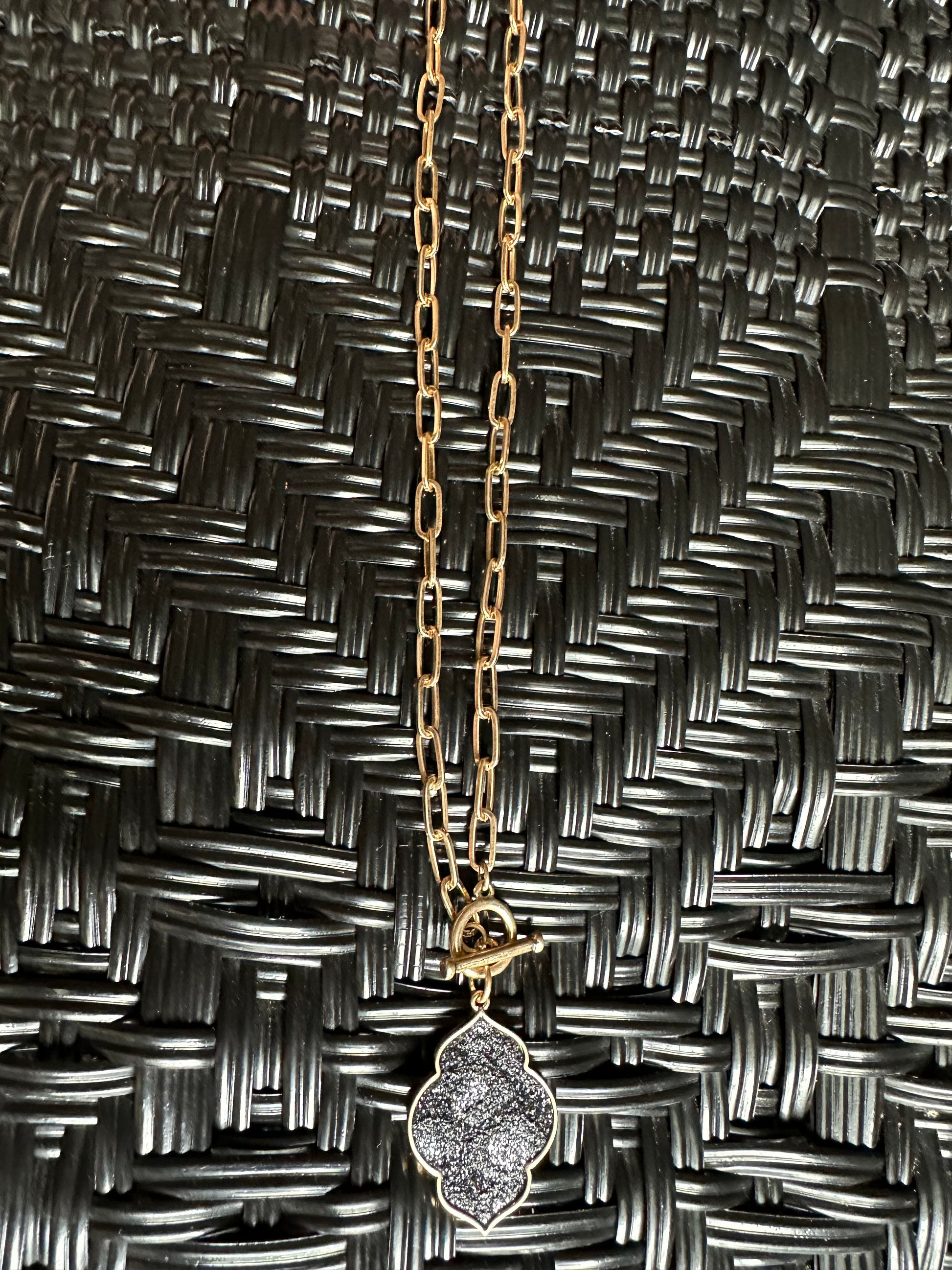 Pink Panache Gold Paperclip Necklace with Black Pendant