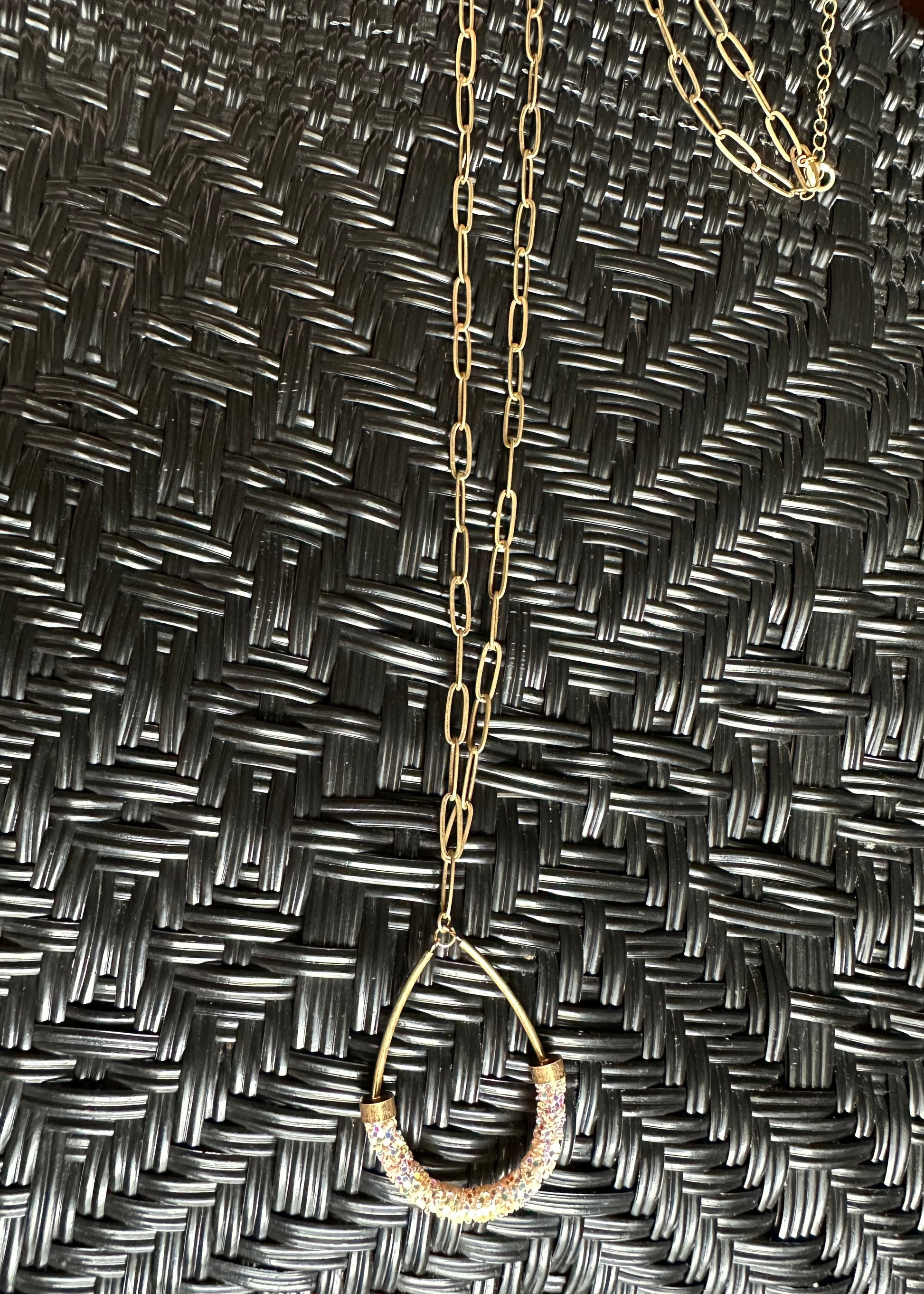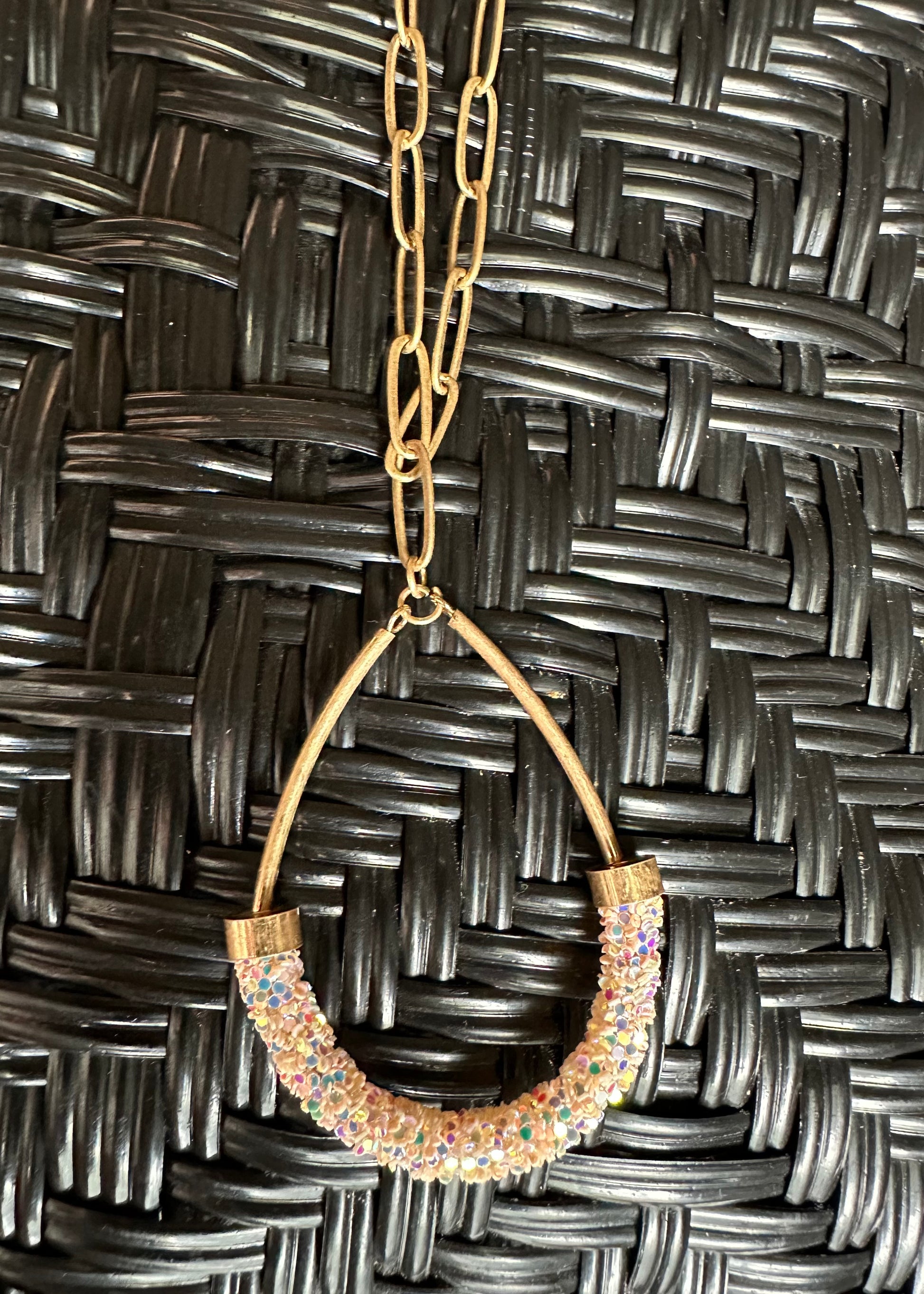 Pink Panache Gold Paperclip Necklace with Glitter Teardrop Pendant