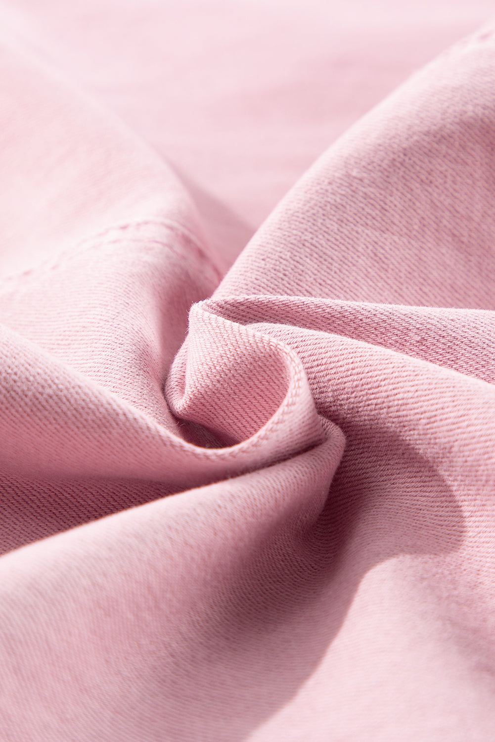 Pink Solid Color Knot Straps Denim Romper with Pockets