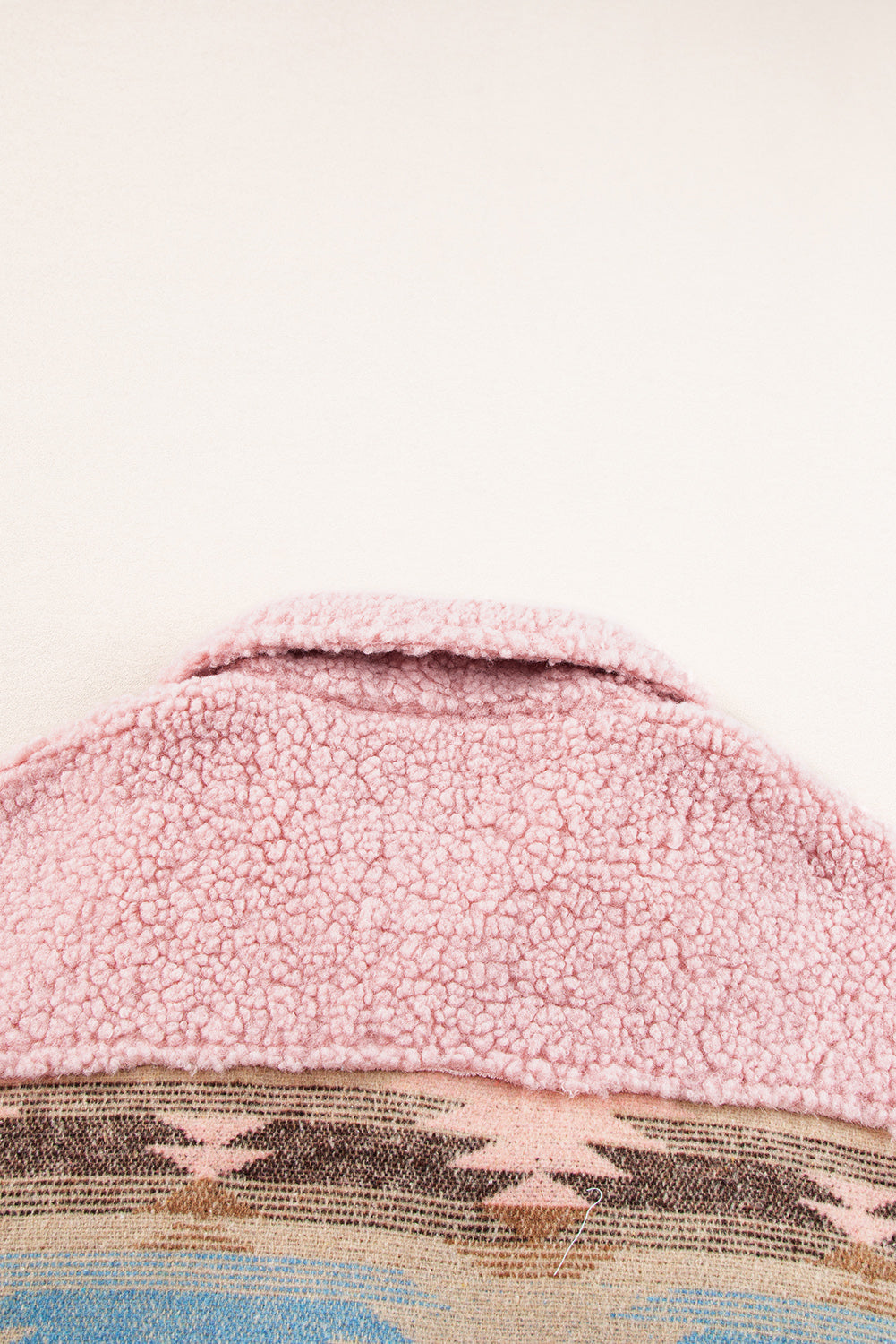 Pink Western Aztec Print Sherpa Splicing Buttoned Flap Pocket Coat