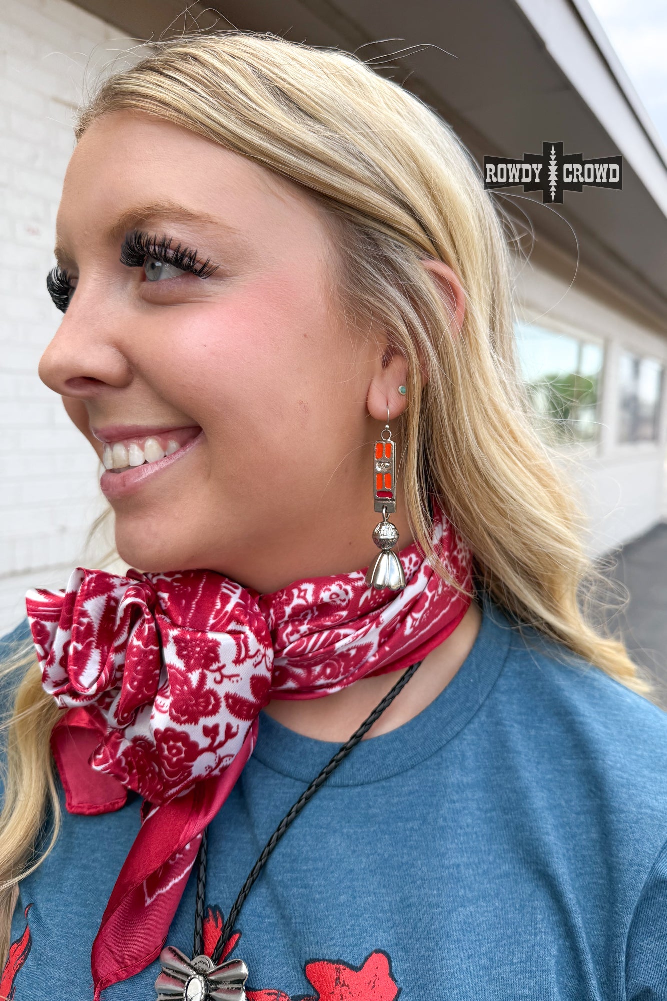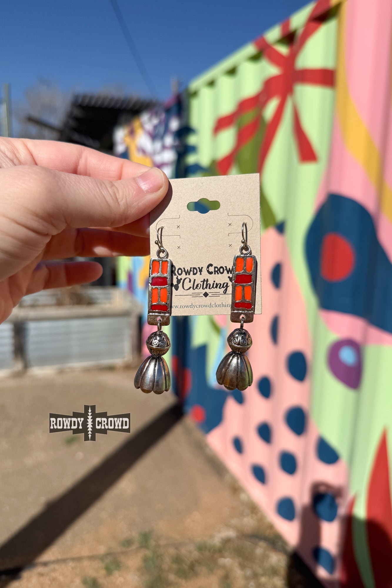 Introducing the Rank Rust earrings, where vibrant colors meet western design! These stunning silver earrings feature eye-catching orange and red enamel accents and a bell-shaped charm. These are perfect for those who love to express their unique style with a hint of Southwestern charm.