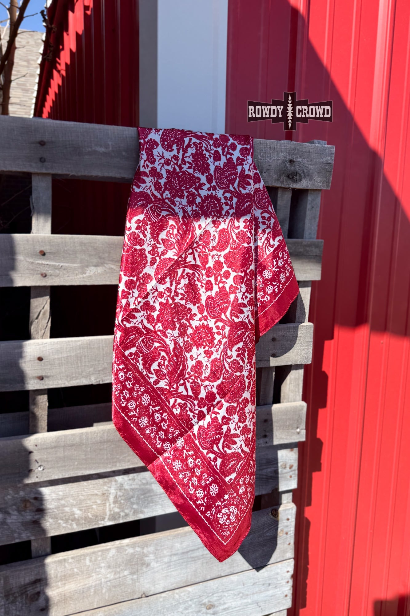 Our Red Lodge Wild Rag is a classic red and white paisley printed wild rag. Perfect for tying around your neck for warmth, in your hair to keep it out of your face or even added to a backpack or purse for an everyday accessory. No matter how you use it, its a must have in every closet.