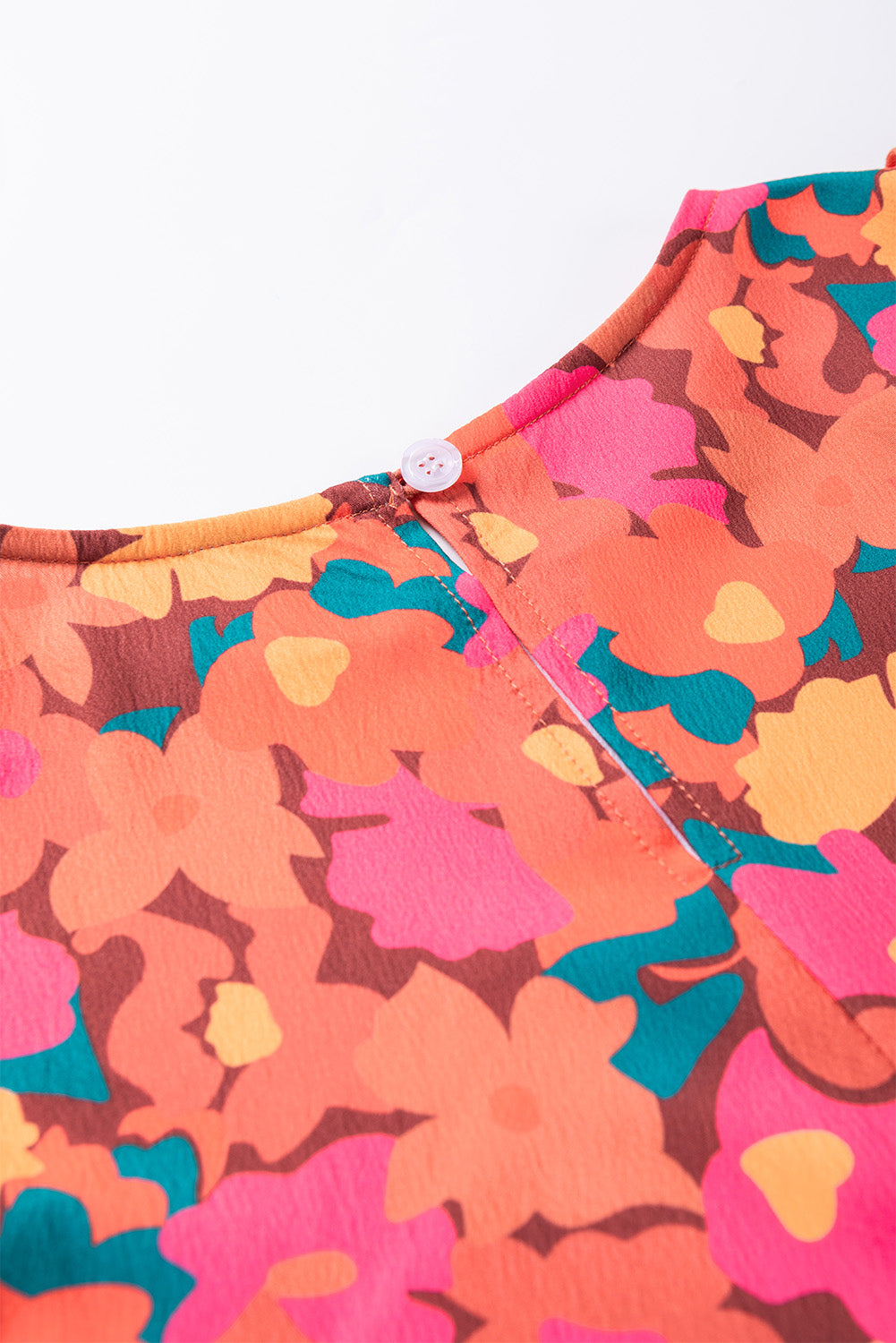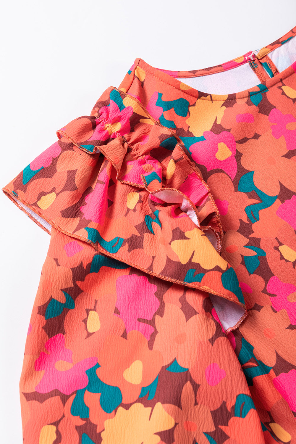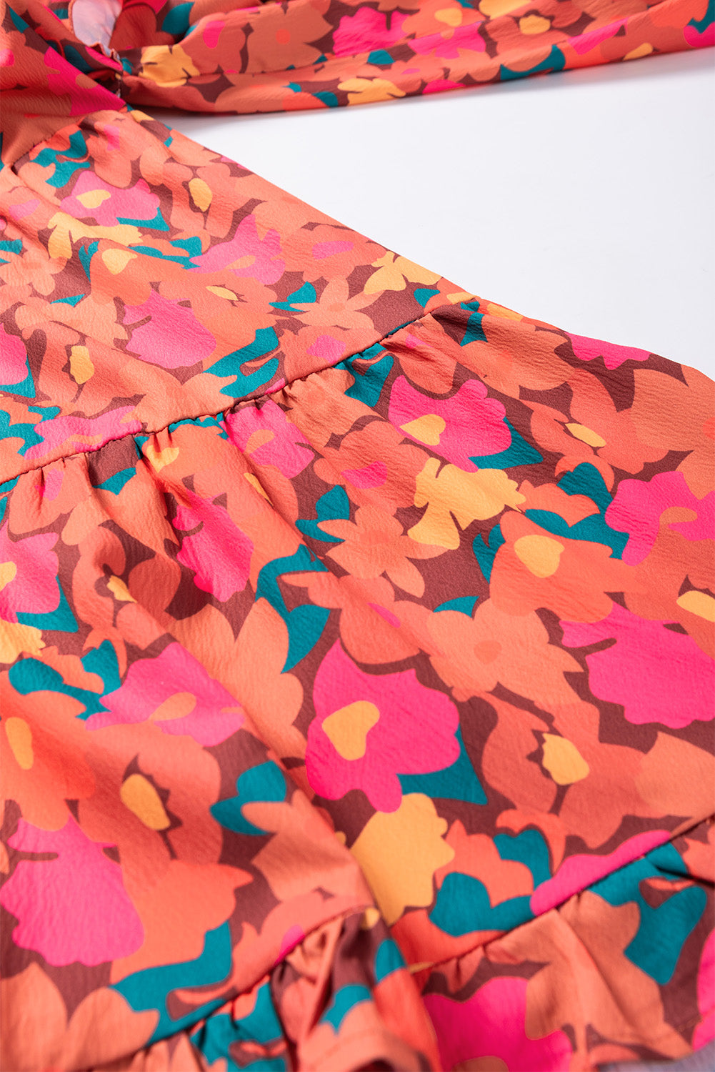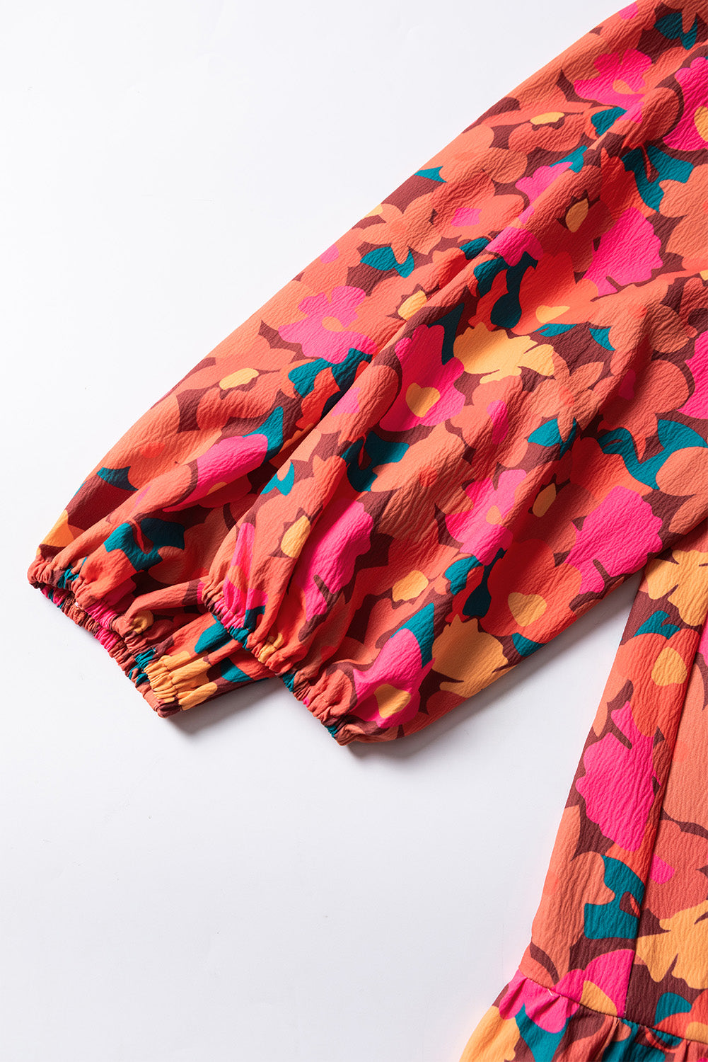 Rose Red Ruffle Shoulder Long Sleeve Floral Mini Dress
